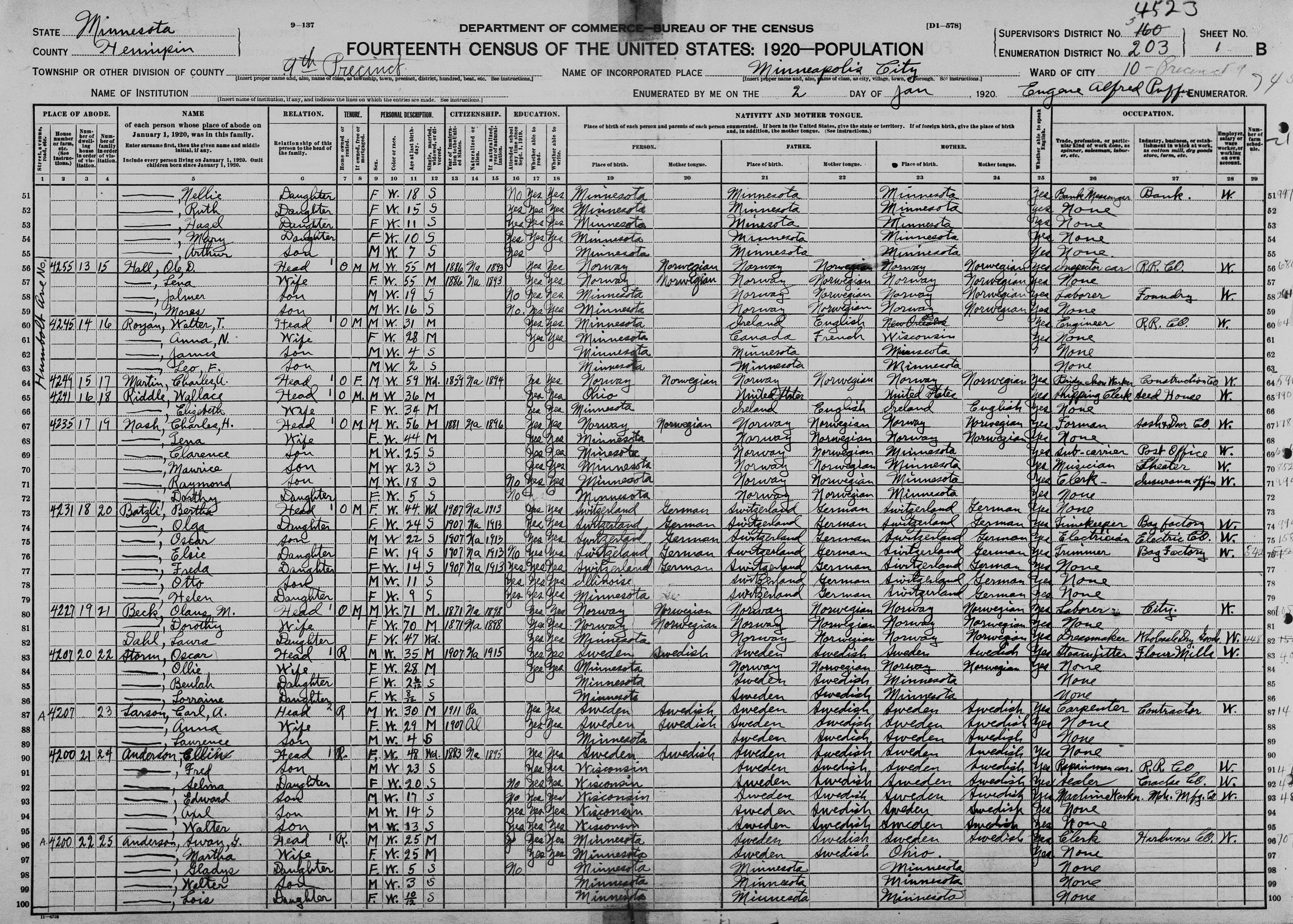 - Andrew (44) and Mabel (38) are listed in the City Directory of Minneapolis, Hennepin, Minnesota as a Shipping Clerk at John M. Shank and Co h4243 31st Av S Documentation #48: ‘US City Directories’