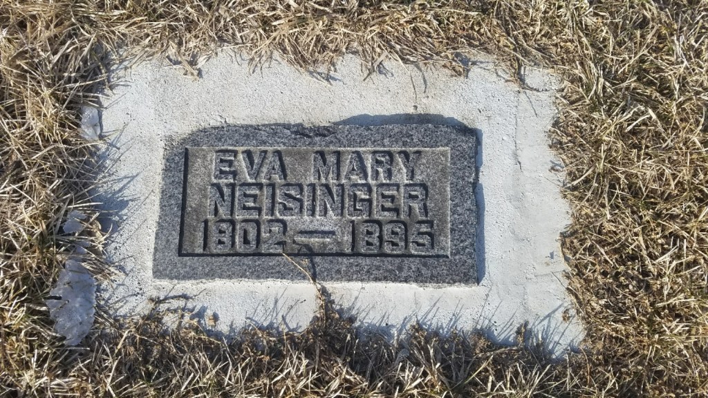 Shoot the door!”, Grandma Eva Neisinger would say in her broken English according to oral family history. During the 1890’s, she was living with her son Paul and his large family on a farm near Pelican Rapids, Minnesota when she died. Paul had traveled a distance back to Wisconsin to pick her up a few years previous accompanying her to his area in northwest Minnesota. Eva had been living with her youngest daughter Catherine Wilkie in Bangor (La Crosse County) where Mr. Wilkie was a blacksmith. Their growing family possibly “forced” mother to relocate. Husband, Jacob Neisinger Sr, was dead by this time. There is no knowledge of when or where he died or is buried, but his death probably occurred in the Bangor, Wisconsin area.